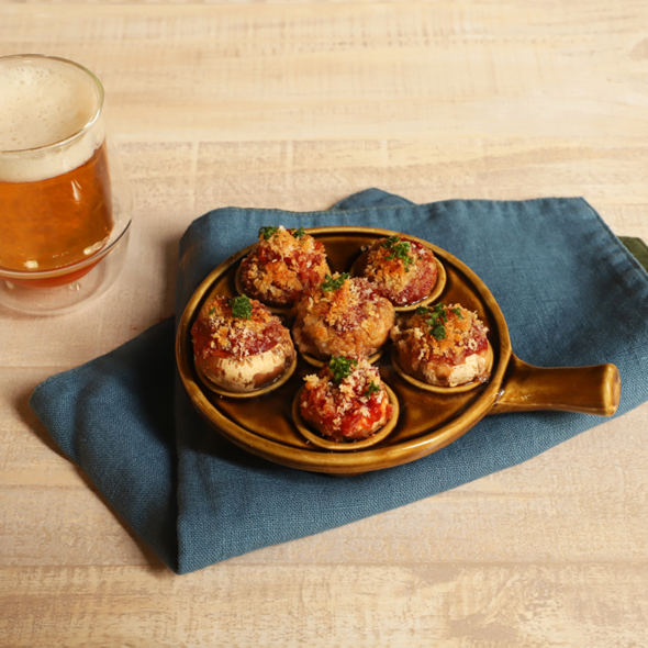 マッシュルームにソースを詰めてオーブントースターで焼く簡単メニューです。