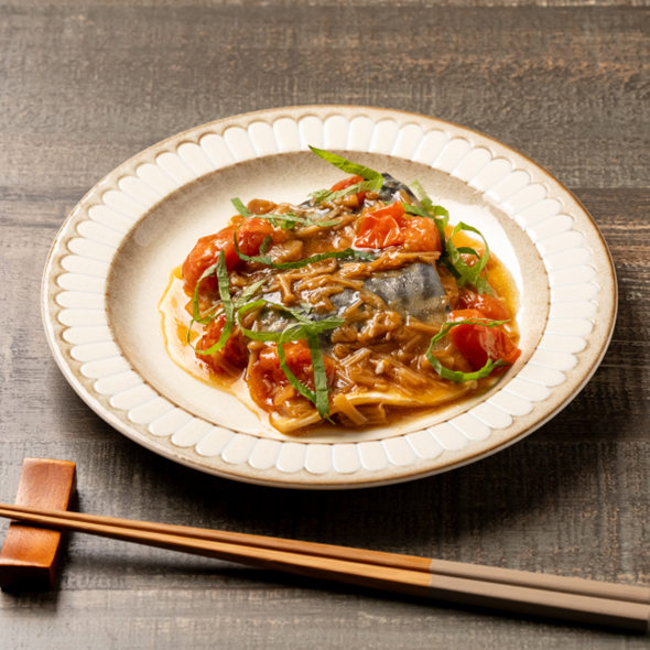レンジで簡単! サバとなめ茸のトマト煮