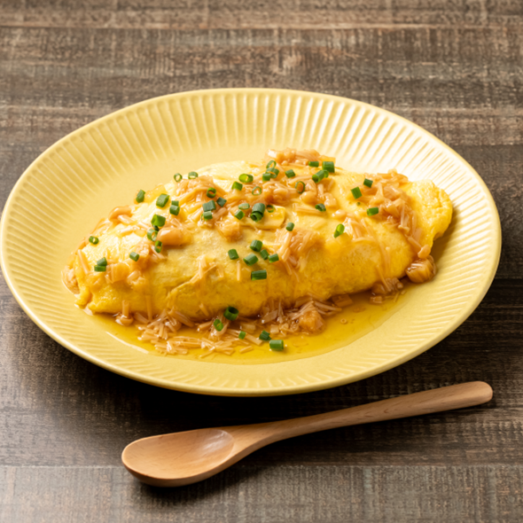 | 2 | フライパンにサラダ油を熱し、Bを流し入れ、半熟状になったら①をのせて包み、器に盛りつける。 |