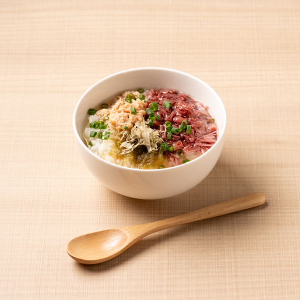 | 1 | 茶碗にご飯を盛り、Aをのせる。熱湯をかけ、青ねぎを散らす。 |